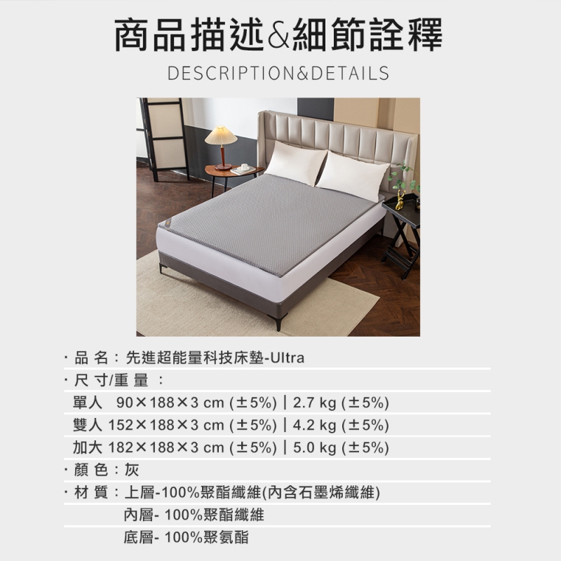 H&H先進超能量科技床墊-Ultra+石墨烯四季被(灰韻花影款) 數量