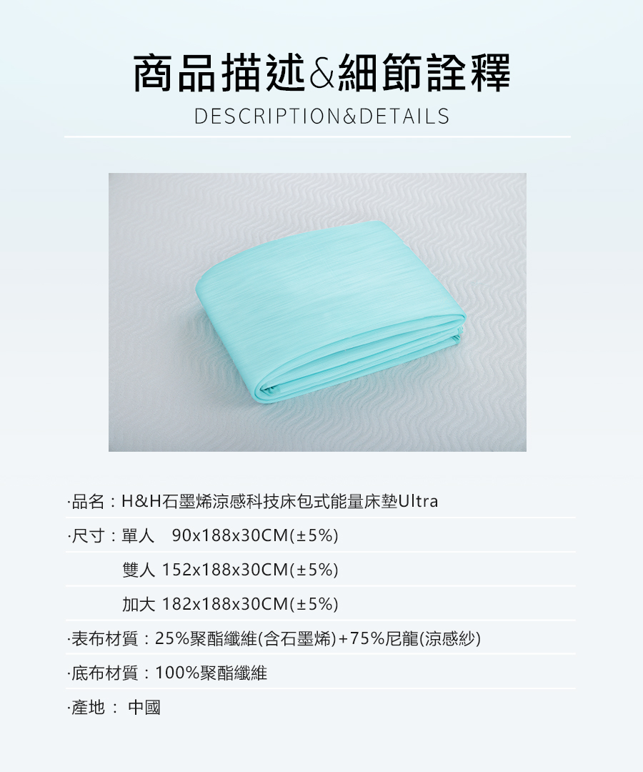 H&H石墨烯涼感科技床包式能量床墊Ultra(含枕套)